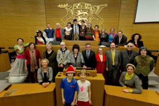 Im Auftrag der Staatsrätin für Zivilgesellschaft und Bürgerbeteiligung: Für sechs Monate haben 20 Bürgerinnen und Bürger einen Blick auf den Kern unserer Demokratie geworfen und in einem partizipativen Prozess einen Theaterplot entwickelt. Zwei Dutzend kreative, Beteiligungsformate, die dabei zum Einsatz kamen, haben wir in der Spielkiste Bürgerbeteiligung als Leitfaden und Anregung für Kommunen, Initiativen und Theatergruppen zusammengestellt. Das Theaterstück „Bürgerbeteiligung – Ein Lustspiel“ um Beteiligung und Bequemlichkeit, Macht und Ohnmacht, Politik und Verdruss war in Konstanz sieben Mal ausverkauft. 2013 folgte eine Tour durchs Land und ein Auftritt im Plenarsaal des Landtags.